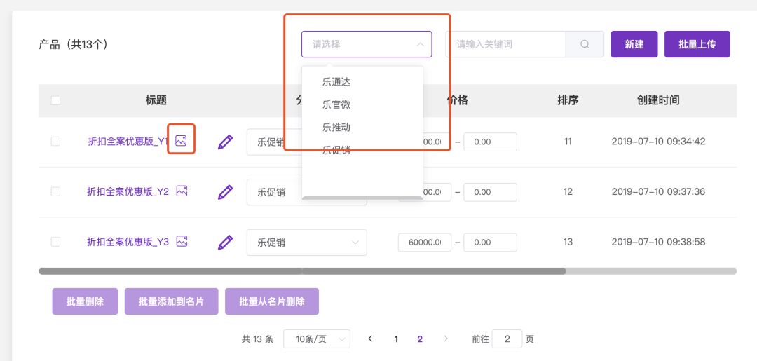【新增】产品的分类搜索、标题右边增加有图片的显示方式、新建产品时默认排序为1000。