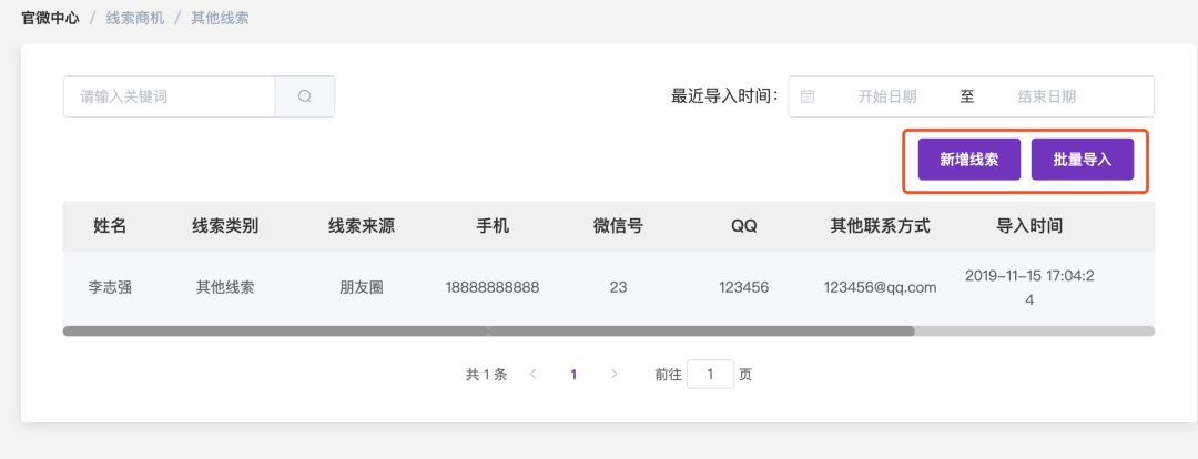 【新增】增加其他线索的添加及导入功能。