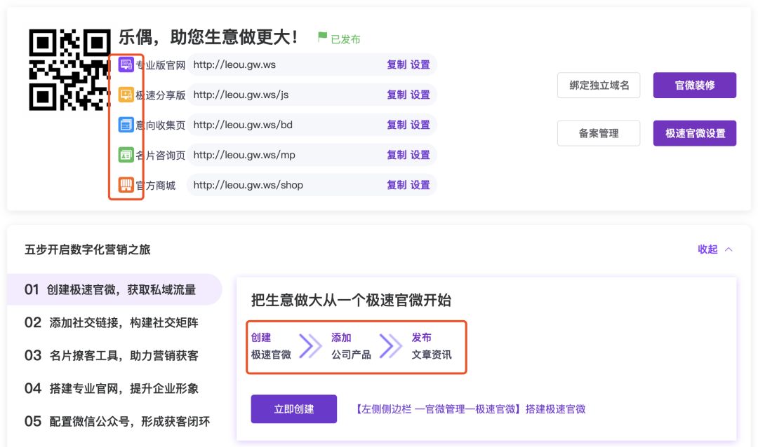 【新增】首页落地页图标、引导页增加创建产品、发布文章的入口。