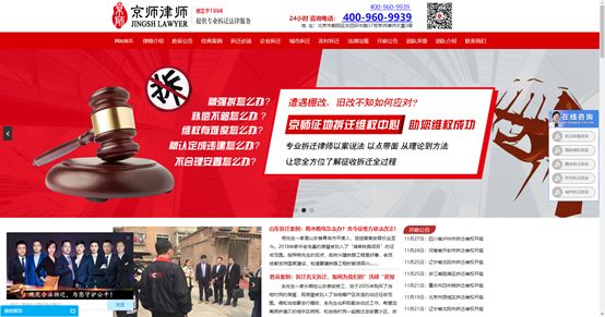 律师一直是一个知识门槛较高的行业,所以在其网站搭建的时候,尽量采取有冲击力的配色及文字,然后结合案例及资质,增加权威性、可信性,再在页面明显位置增加联系电话、表单、在线客服等线索收集工具,形成线索归集。