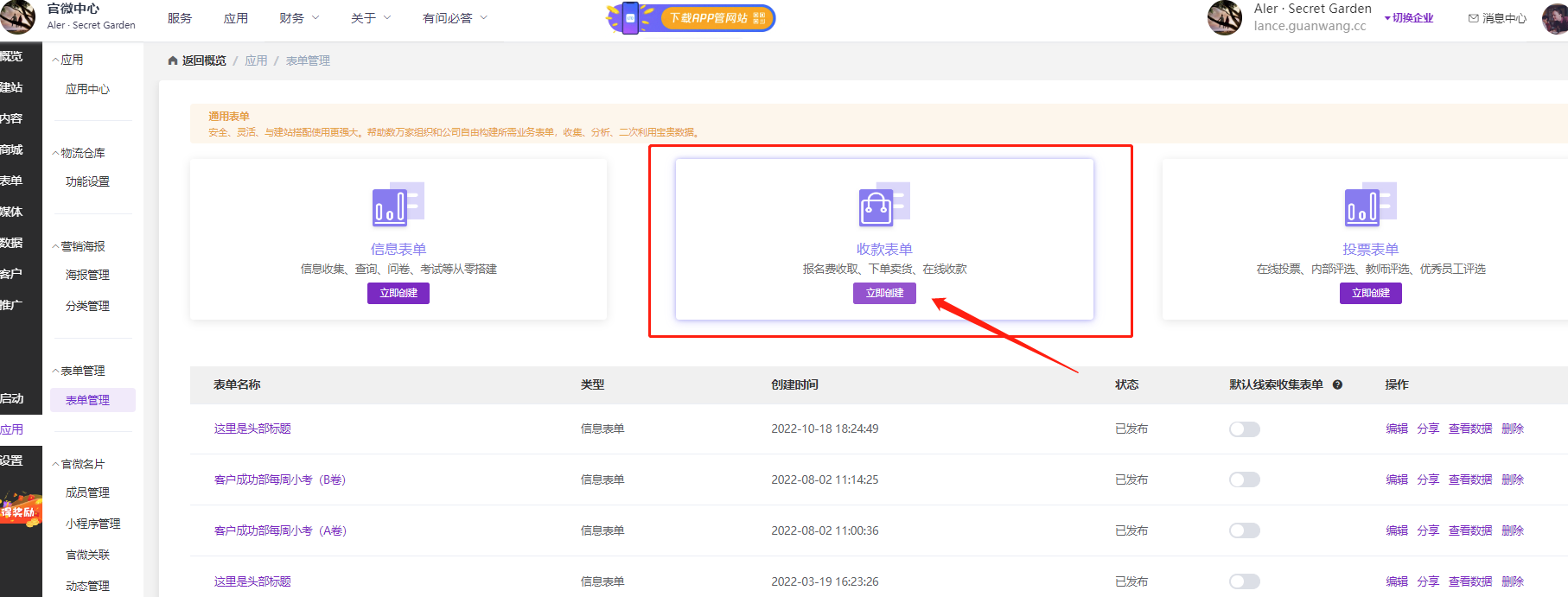 二、点开后可以看到表单管理界面,在这里可以创建新的表单或者修改删除已有表单,这里我们选择“新版本编辑器”