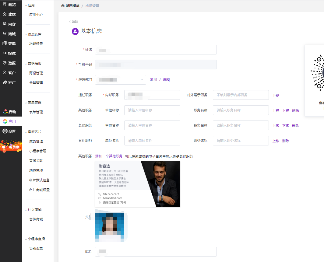 利用官微名片的多职务功能,你可以将你的所有头衔、职务都在名片中展示。
