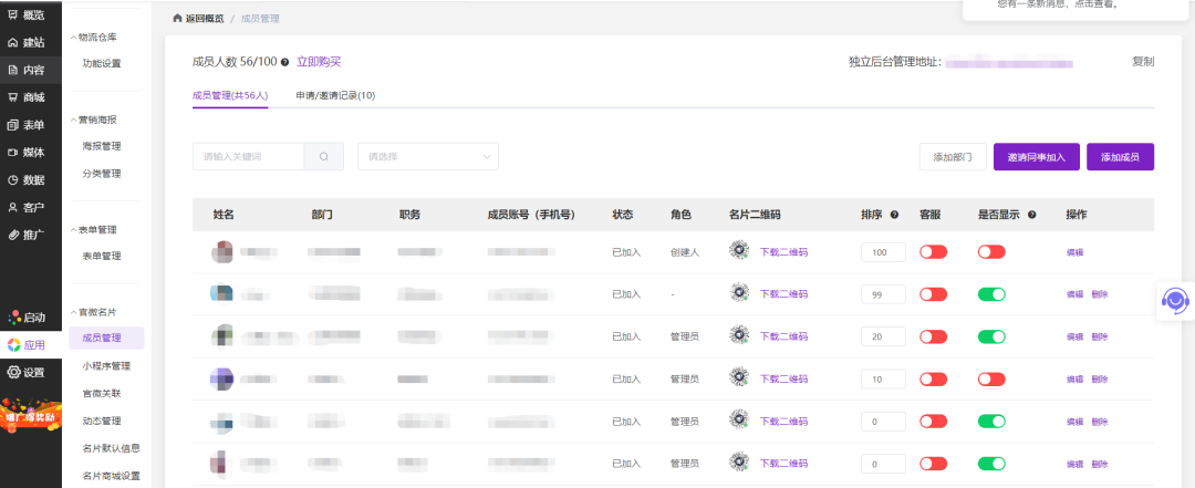 2)选择一个成员,点击编辑按钮进入基本信息编辑界面