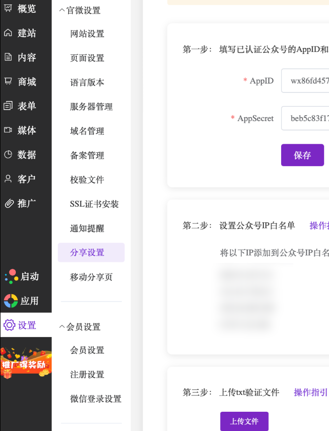 如果想让页面分享到微信带上图片和摘要,需要在官微中心后台进行正确的配置。