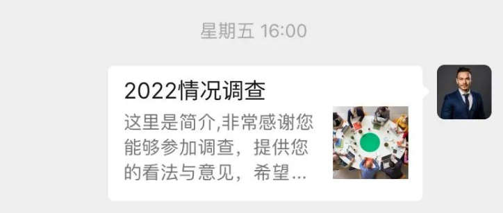 表单分享到微信中只显示标题如下图所示,可以设置带图、带摘要吗?操作路径:官微中心 - 表单 - 表单管理 - 选择编辑 - 主题样式,在表头设置区域:可以分别对表单名、表单简介进行设置点击标题和简介区域,即可对标题与简介进行编辑。打开 表头显示,并选择单张图,上传一张表单的主图。这张主图除了显示在表单顶部以外, 在微信分享时也将作为缩略图进行呈现。设置好之后分享效果如下: