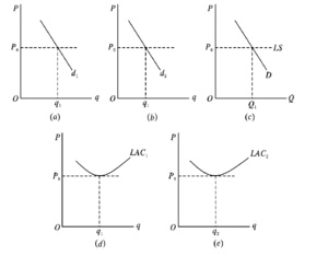 这可以用图来说明(如图所示)。假定一个社会由两个消费者和两个厂商组成,并假定成本不变。我们可以分别给出A,B消费者及市场需求曲线(由A,B两个消费者需求曲线加总而成),以及作为单个厂商成本曲线总和的市场供给曲线。市场供求相等表明完全竞争条件下能够以最有效率的方式进行生产并能够使消费者得到最大的满足。