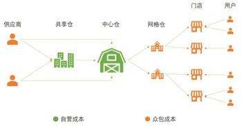 在每个开城省市,平台方会搭建一个中心仓和多个共享仓。大部分供应商本身会在中心仓附近建仓租仓,方便给中心仓供货,也有部分商品如蔬菜会首先供货到共享仓进行加工分装,然后由平台方自建运力拉到中心仓;
