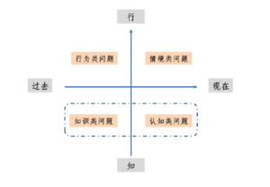 中国自古就有关于思想与实践的命题,中国古代哲学家认为“知行合一”,既要有认识(“知”)还要去实践(“行”),知是行之始,行是知之成。对于能力的考察也是如此。从知到行,从意识改变到行为改变,是能力发展的关键。即时计分访谈的设计既访谈“知”(包括意识、认知、知识态度),也会针对“行”(行为)进行访谈。而对知与行的评价是基于过去和现在的时间维度上考察,过去的行为能够在一定程度上预测未来。由此,我们通过对以下几类问题的访谈,就能够判断一个人是否具备特定的能力及特质: