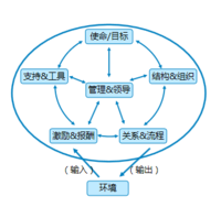韦斯伯德(1976)在他的组织诊断模型中提出了六大类:目的、结构、关系、领导力、奖励和有用 的机制。