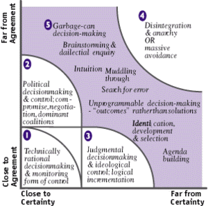 有些问题非常确定,但有很大的不认同级别。计划或共同的使命在这种场景下可能没有用。相反,策略变得很重要。联盟的成立,谈判和妥协,这些方法用于创建组织的议题和方向。