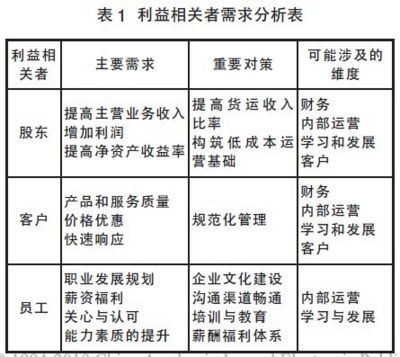 1. GW公司的战略重点为了达到战略目标,必须明确战略重点。对于GW公司, 通过分析利益相关者的关注点来确定战略重点。GW公司最关键的利益相关者是股东、客户、员工,项目推进团队通过走访部分利益相关者,将他们的意见进行归纳整理,形成如表1所示的“利益相关者需求分析表”。基于以上分析, 将GW公司的战略重点定义为:提高资产收益率,增加利润;提高客户满意率,建立和谐的客户关系; 进行规范化管理, 创新流程,提高人才素质,关注员工满意率。