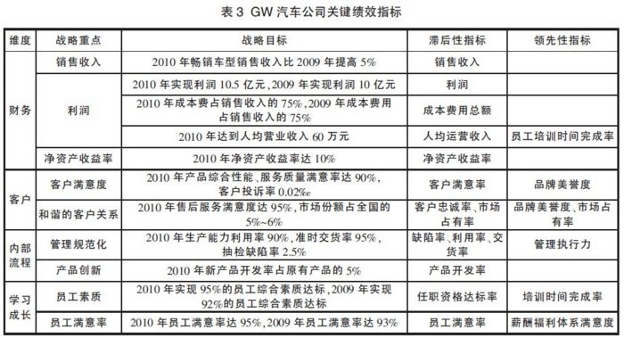 2. GW公司的绩效评价战略目标是公司在一段时间内对所需要实现的各项任务进行评价, 它可以是定性的也可以是定量的。好的战略目标必须符合利益相关者的利益且容易被他们及时理解。可以采用“时间期限+重点对象+量化标准”或“间期限+重点对象+定性化描述”的两种方式表达。
