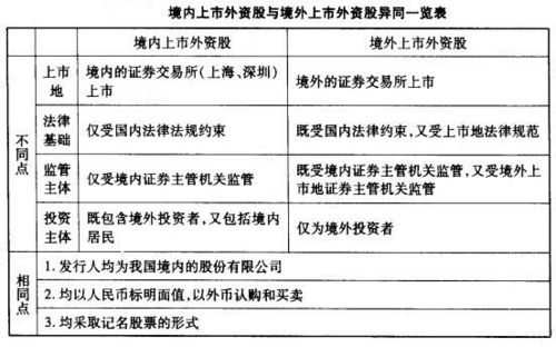 2.境外上市外资股与境内上市外资股的比较
