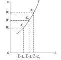 ,即图3(要素供给曲线)中的K0点。相应地还可得到点K1,K2(分别对应于W1、W2)以及供给曲线上的其他各点(对应于W的其他可能值)。将这些点连接起来就可得到要素的供给曲线S。