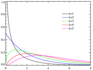 其中x≥0, 当x≤0时fk(x) = 0。这里Γ代表Gamma 函数。