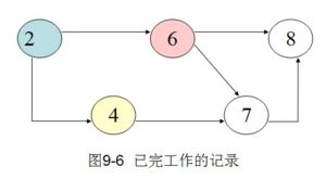 在网络图的节点内涂上不同的颜色或用斜线表示相应工作已经完成,如图9-6所示