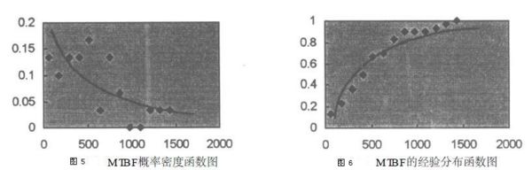 由概率论可知,故障间隔时间的概率密度曲线呈单调下降趋势。可见,该加工中心故障间隔时间所服从的分布不会是正态分布或对数正态分布,而可能是指数分布或威布尔分布。