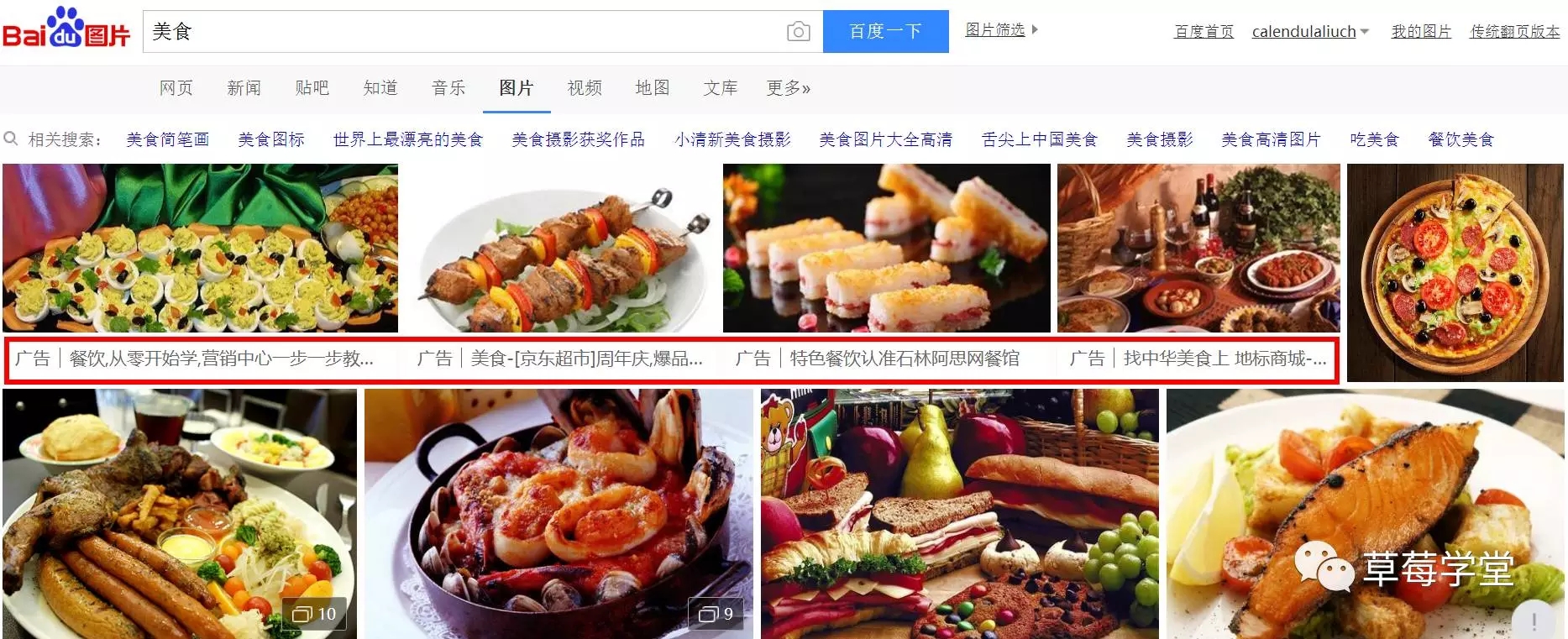 百度图片的原生广告,广告图片和其他搜索结果中的图片高度一致,除了图片下面的一小行文字备注外,看不出任何差别。