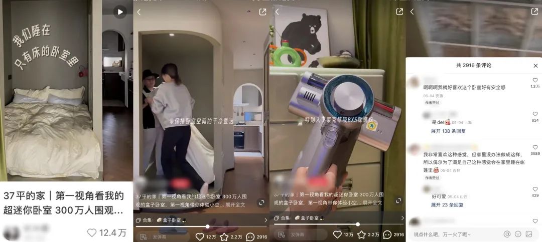 小红书爆文内容:博主通过视频展示了每次打扫卫生的场景,并提到了在包裹式空间中如何处理床上用品的清洁问题,巧妙地推荐了除螨仪仪器,选题带有话题性和流量,满足了用户需求,具有很高的种草价值,普通人也可以借鉴。