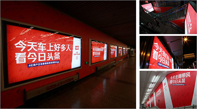 今日头条是一家新闻客户端,最近在地铁、公交车和电梯等生活场景中进行了广告投放。平时我们不会特别关注今日头条的广告,但这次不一样,他们采用了非常吸引人的广告语,给今日头条增添了不少分。在新媒体竞争激烈的今天,不仅品牌在广告营销中投入了大量精力,新闻客户端领域也是如此。今日头条一直强调内容推荐的个性化,所以在这次广告营销中也真正做到了千人千面、百人百性。他们准确地定位户外投放,并创造了无限脑洞的鬼畜视频,一下子占据了大家的话题圈,赢得了很多关注。这种屏幕霸占式的洗脑新手法似乎又打开了新的大门。