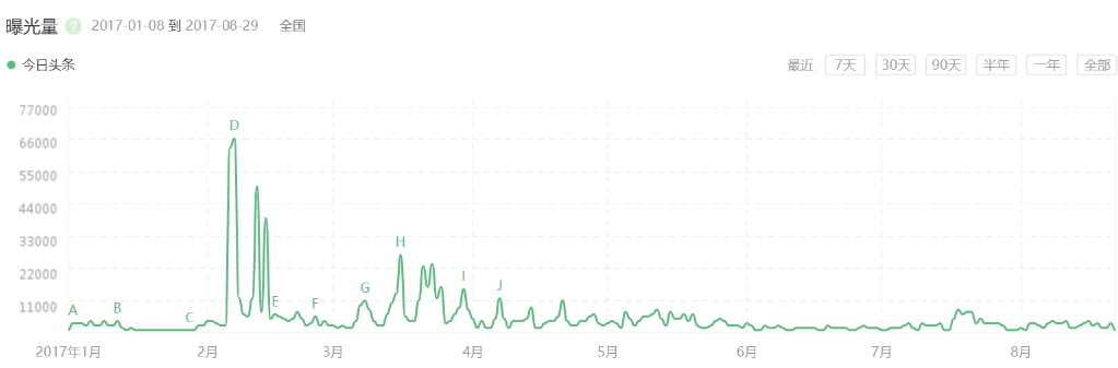 「今日头条」1-8月份360趋势曝光量分析:根据百度搜索指数和360趋势显示,广告在一定程度上取得了效果。然而,从360趋势的关注趋势来看,广告效果持续了很长时间,与其他平台的数据一致,具有短期内非常明显的效果。然而,这种文案在朋友圈中的传播较少。那么,你使用今日头条吗?(朋友圈传播指数:★)
