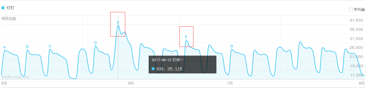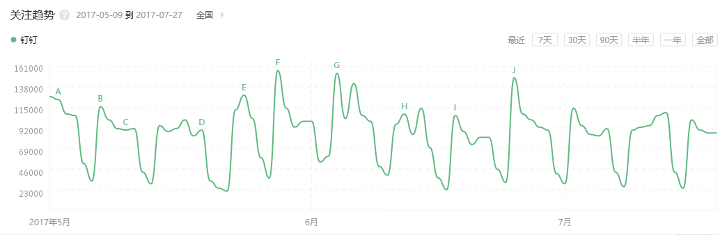 「钉钉」5-7月份的关注趋势(数据来源:360趋势)