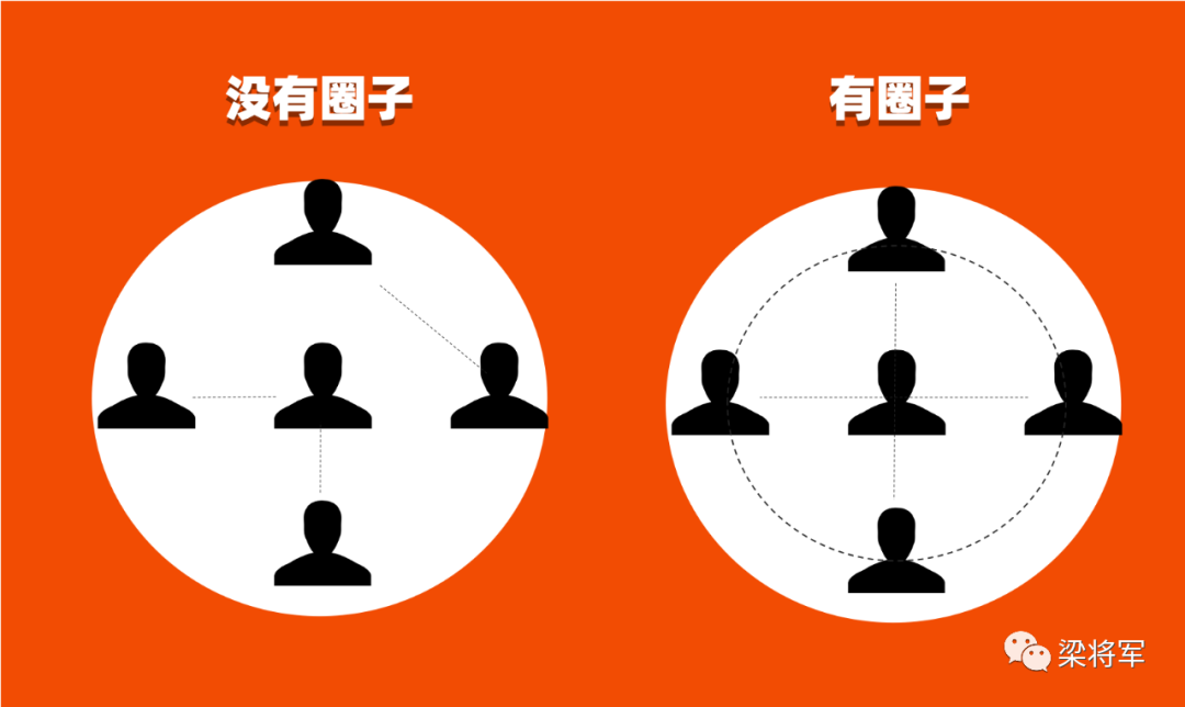 想要让品牌和营销真正实现“破圈”,我的答案是:品牌破圈,必先入圈。每当听到有人抱怨自己的营销活动没有打破圈限时,我都想问他们一句:“你的圈是什么?你真的有圈吗?”大部分品牌方其实都在自欺欺人,他们根本没有建立起自己的圈子。他们所谓的“没有打破圈限”,实际上是指:“为什么我的营销活动不能像其他人一样在社交媒体上刷屏?”然而,品牌的确需要一个自己的圈子,一个让自己“画地为牢”的圈子。让我们来看看,一个有圈子的品牌和一个没有圈子的品牌的传播效果有何不同。例如,假设你有一个促销活动,预算只够传播给100个人。一边是将信息随机传播给100个人,另一边是将信息传播给一个由100个人组成的圈子。这两种传播方式会有什么区别呢?
