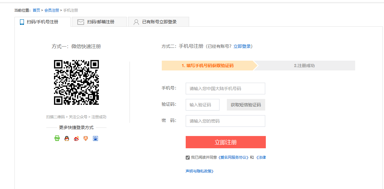 首先,注册一个爱名网账号,注册地址:会员注册