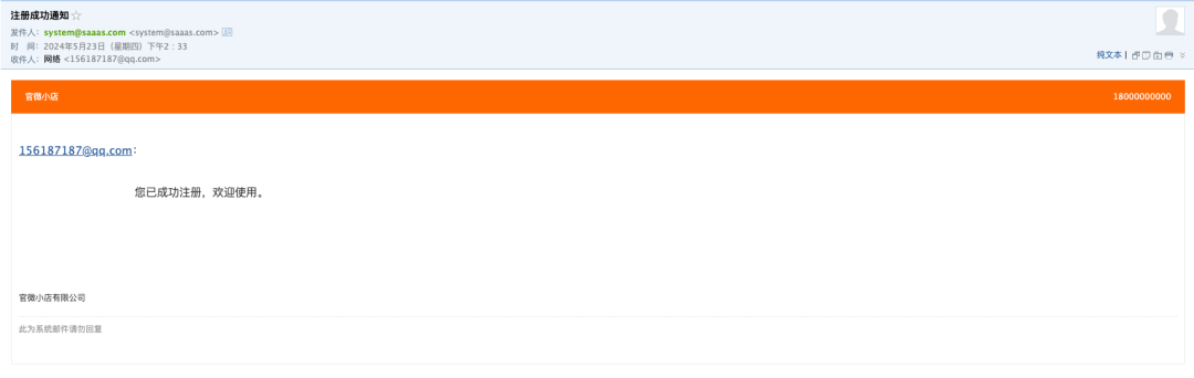 当会员注册成功后,其邮箱就可以收到邮件通知,如下图所示: