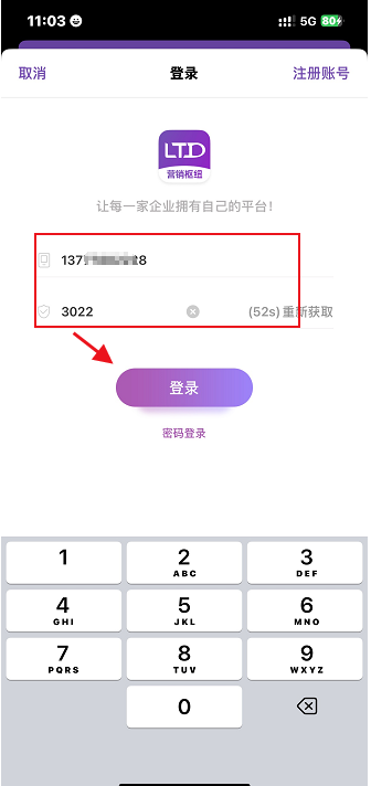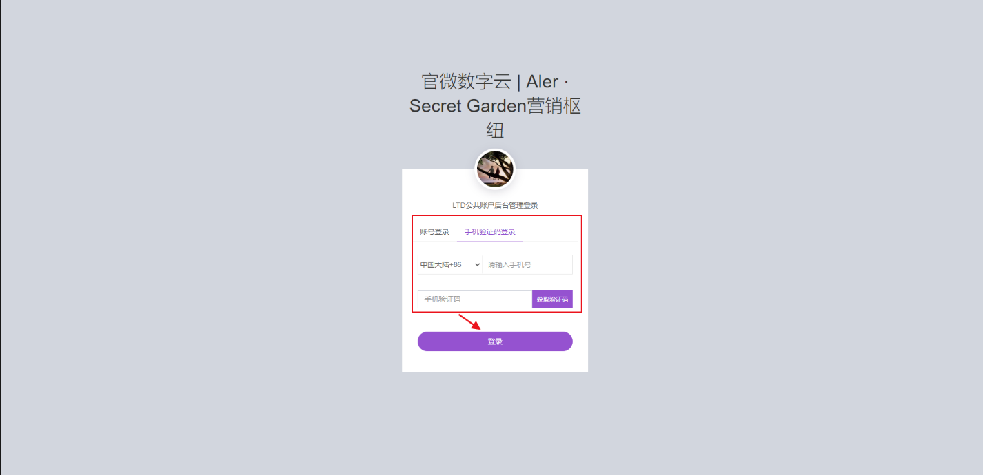 - 输入信息登录:打开复制的网址,进入登录页面,可选择账号登录或手机验证码登录。输入手机号,获取并输入验证码,点击 “登录”,即可进入官微中心后台。