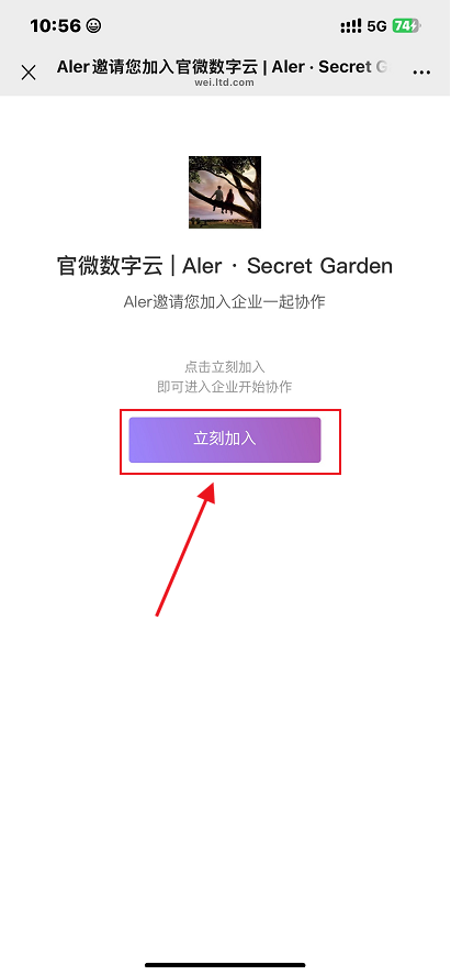 - 同事点击链接操作:同事点击收到的链接,进入邀请页面,点击 “立刻加入”。