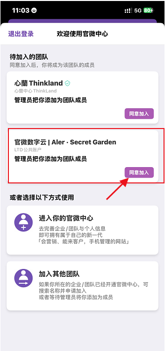 - 登录并确认加入:打开 APP,输入手机号和验证码登录。登录后在 “待加入的团队” 中找到 “官微数字云 | Aler・Secret Garden”,点击 “同意加入”,即可成功加入企业。