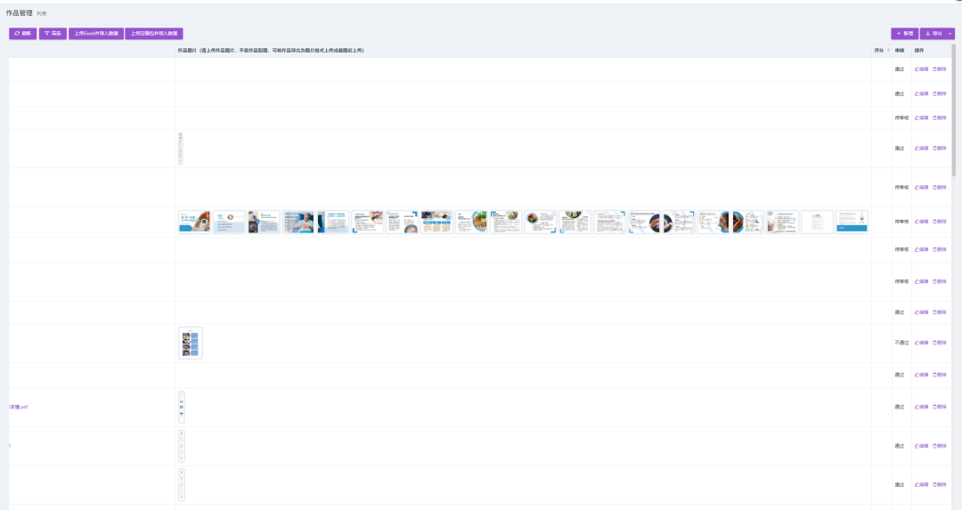 列表页 最多显示 4 张图片(超出部分隐藏),自动压缩列宽,保证页面布局整洁(如图作品管理列表)。