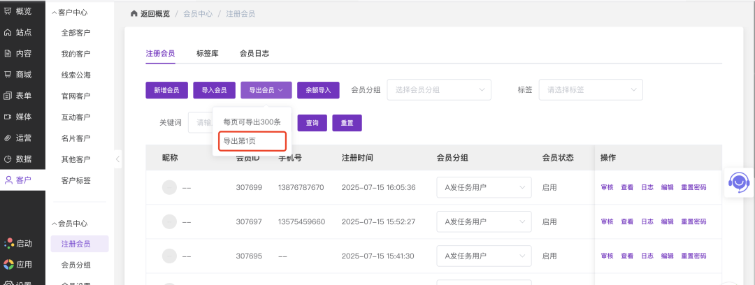 会员数据太多时,以前导出容易卡死、失败。现在改成 “分页导出,每页 300 条” ,稳多了!