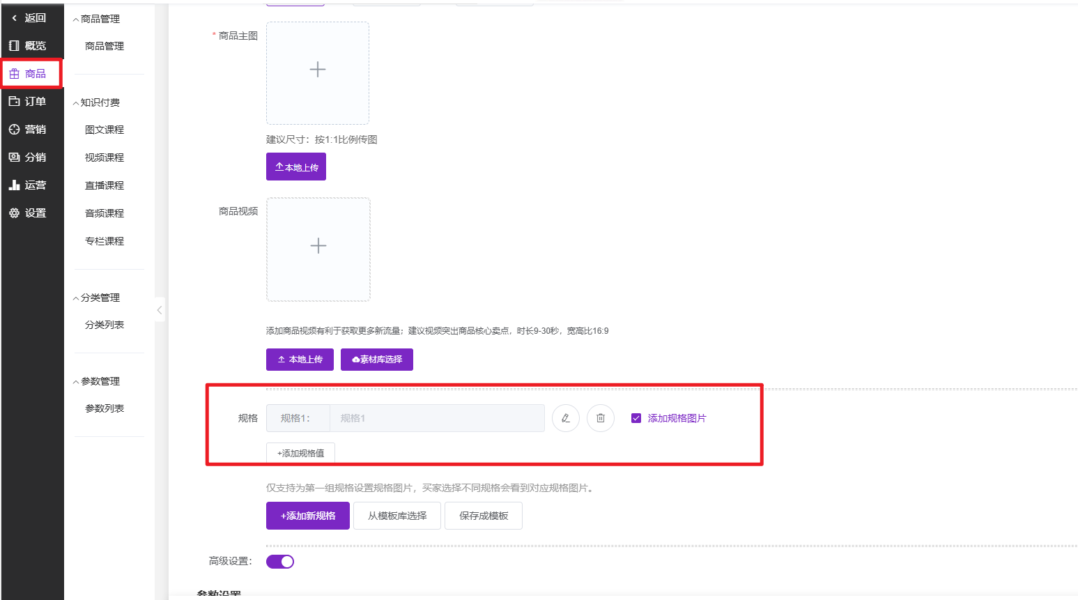 PC商城详情页可以在商品规格中显示商品图片吗?