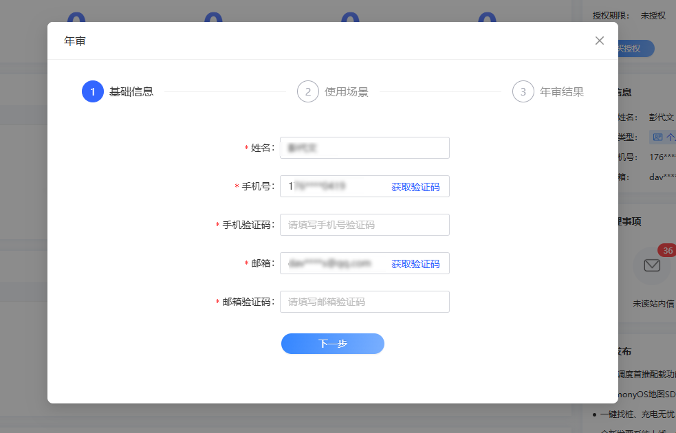 已经注册过账号的可能需要进行年审,登录账号后进入控制台进行年审: