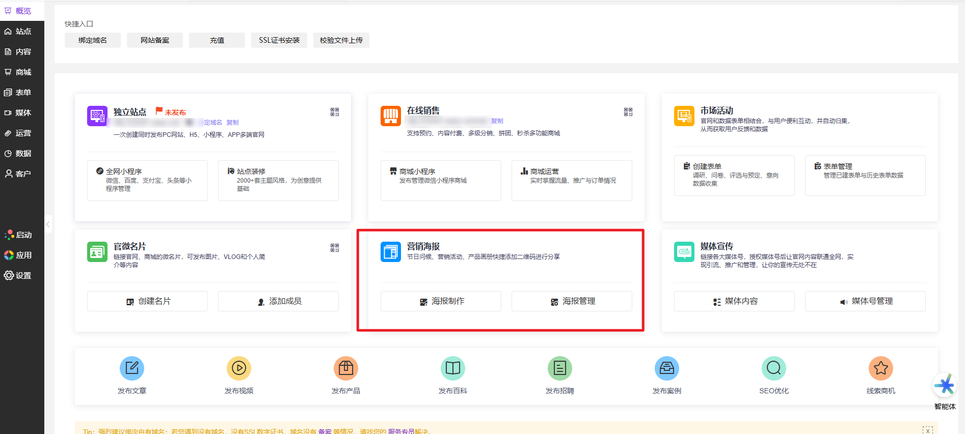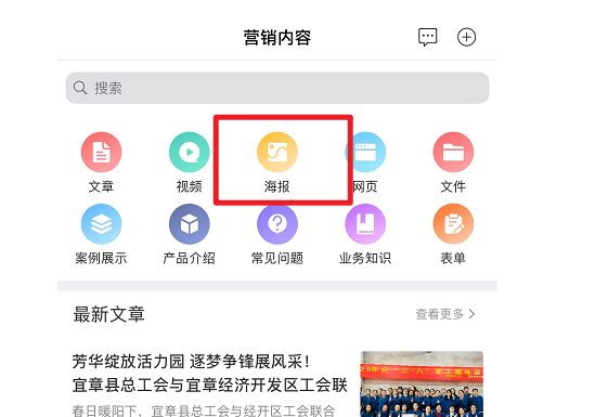 打开官微中心 APP,进入 “营销海报” 板块,这里会展示已上传的所有海报内容;若你给海报设置了分类,还能直接点击对应的分类标签,查看该分类下更新后的海报(这些海报是作为内部分享素材展示的)。