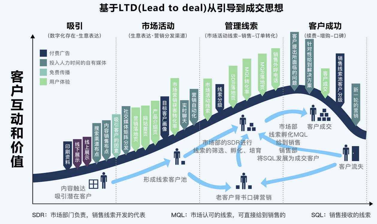 LTD 的增长逻辑更贴合中国市场的结果导向,与其品牌名称形成一语双关 ——“Lead to Deal(从引导到成交)”,核心是构建 “销售+市场+客户成功” 的 “攻坚铁三角”,推动项目从线索到成交的全流程数字化、行为可视化。这一逻辑与飞轮模型本质相通:
