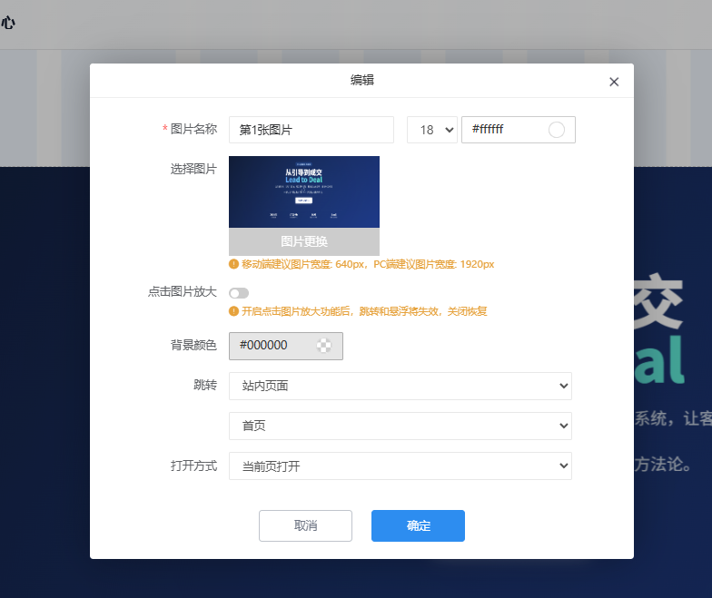 给网站上的banner图等地方设置跳转时,如下图所示: