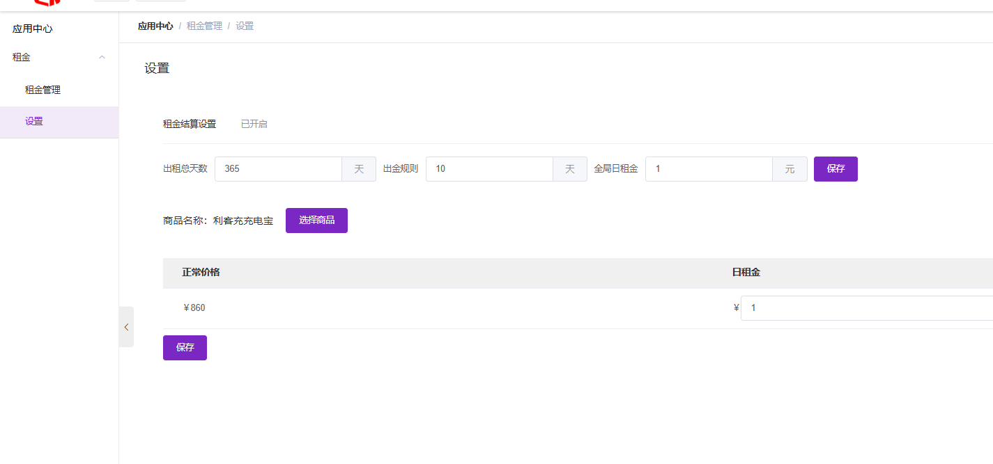 完成参数填写后,点击页面中的 “保存” 按钮,即可完成租金规则的配置。