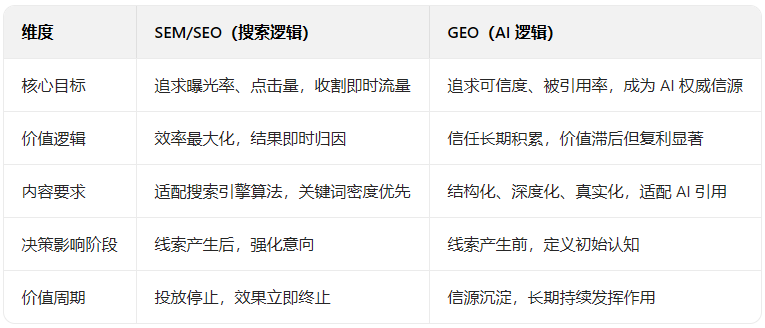 1. 核心逻辑的根本差异:搜索逻辑 vs AI 逻辑