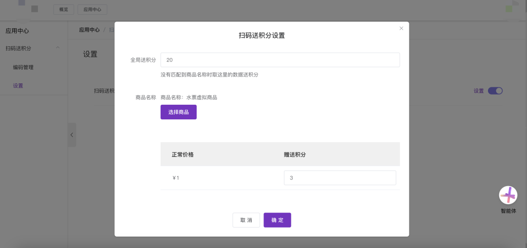 在扫码得积分应用中,如何针对不同商品设置不一样的赠送积分?