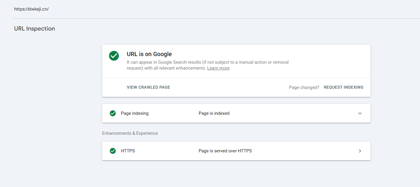 如果检测结果 提示“URL is in Google(网址已在 Google 服务中 )”代表该页面已经被谷歌收录,无需重复提交。