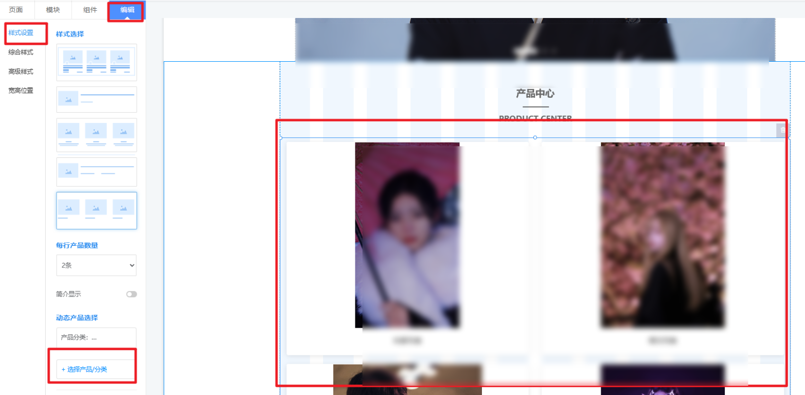 操作路径:网站编辑器—产品模块—编辑—样式设置;