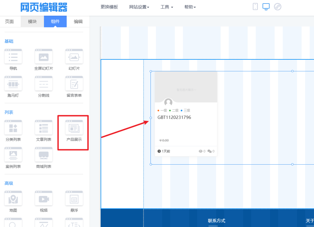 首先在网页编辑器中选中您需要调整的“产品展示”组件,确保其周围出现编辑边框。在页面左侧的属性面板中,点击切换到“编辑”标签页。