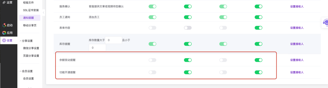 在通知列表中,找到余额变动提醒或功能开通提醒等选项。打开短信通知右侧的开关,即可启用短信提醒。打开邮件通知右侧的开关,即可启用邮件提醒。