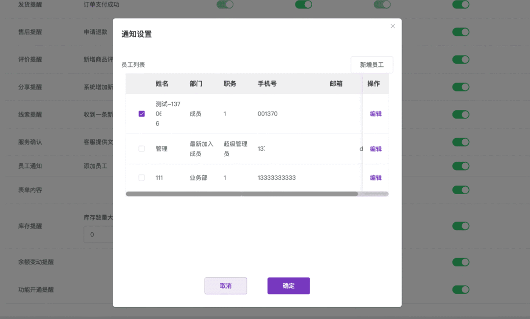 您可以在系统后台打开通知提醒功能。开启后,每当有相关动态产生,系统将自动向您指定的接收人发送短信和邮件提醒,助您实时掌控账户与业务状态。