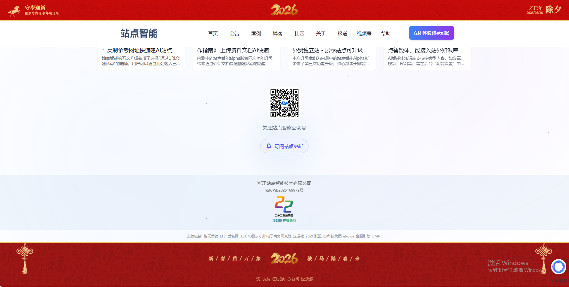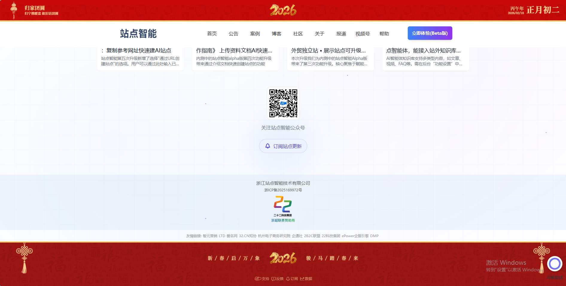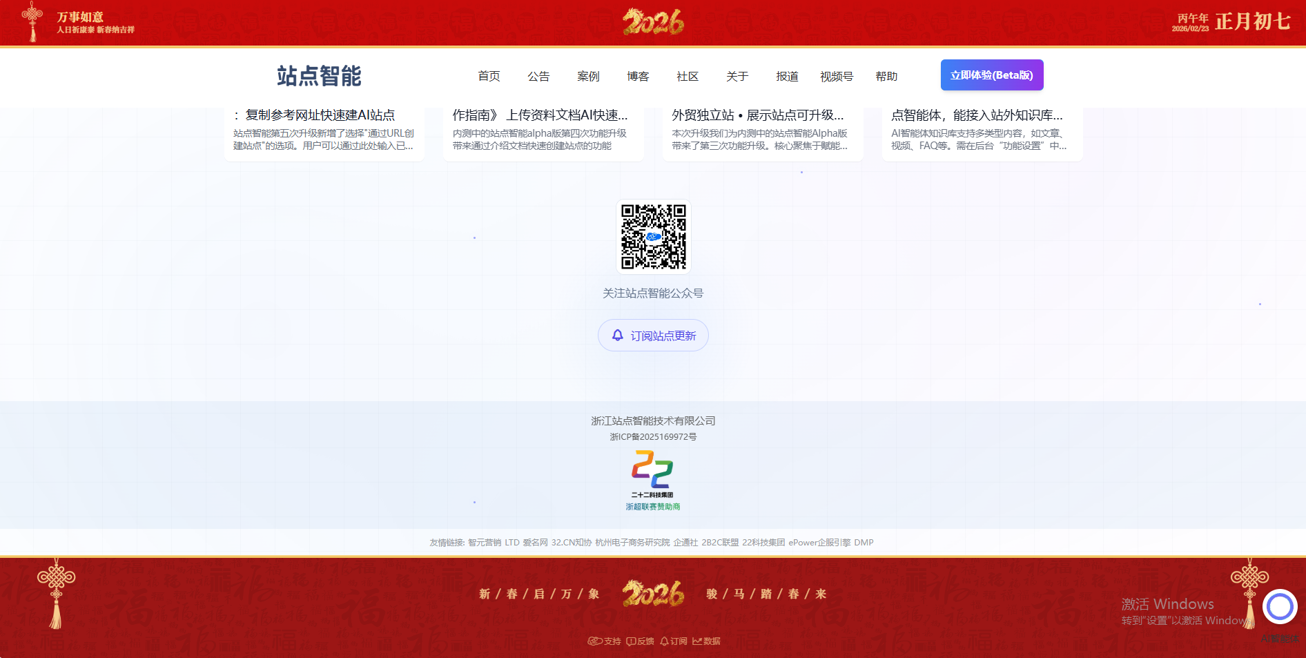 春节期间,大多数公司的官网都按下暂停键:页面冻结、无人维护,生意也仿佛跟着放了假。更可惜的是,许多企业放着自家的官网不用,却在微信里千篇一律的群发拜年祝福,把宝贵的春节营销机会浪费。今年春节,我们重新定义了“企业拜年”。不再是简单升级横幅、制作海报,而是让您的官网主动替您给用户拜年。我们推出春节氛围拜年皮肤+订阅领红包组合拳,可以让您的官网在假期自动获客,成为节日流量的承接器。