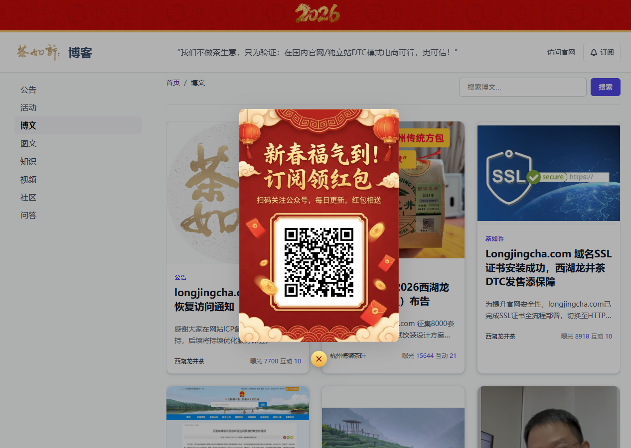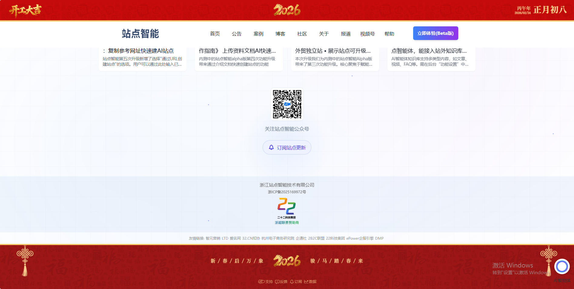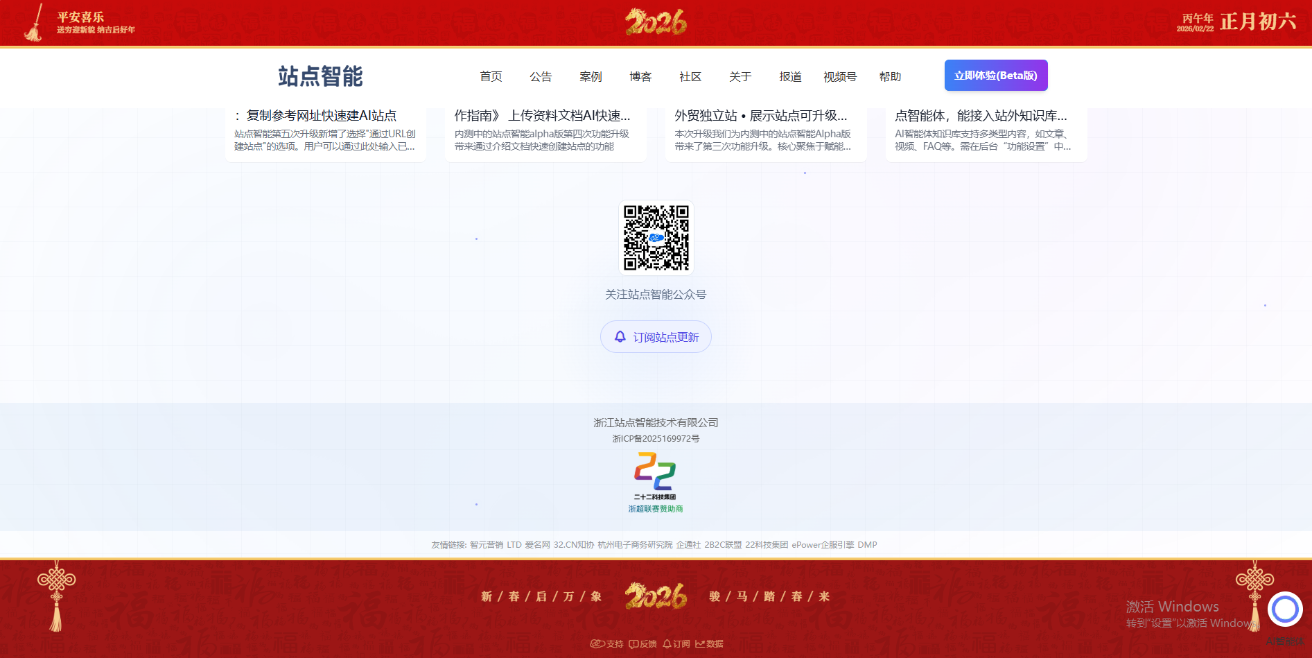 春节期间,大多数公司的官网都按下暂停键:页面冻结、无人维护,生意也仿佛跟着放了假。更可惜的是,许多企业放着自家的官网不用,却在微信里千篇一律的群发拜年祝福,把宝贵的春节营销机会浪费。今年春节,我们重新定义了“企业拜年”。不再是简单升级横幅、制作海报,而是让您的官网主动替您给用户拜年。我们推出春节氛围拜年皮肤+订阅领红包组合拳,可以让您的官网在假期自动获客,成为节日流量的承接器。