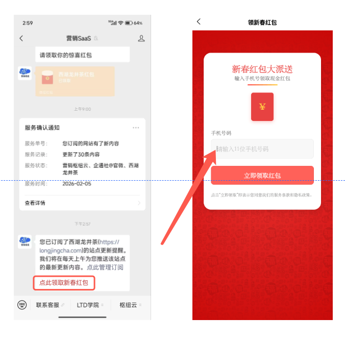 用户需先扫码关注公众号,再填写手机号完成领取,可有效沉淀客户信息。
